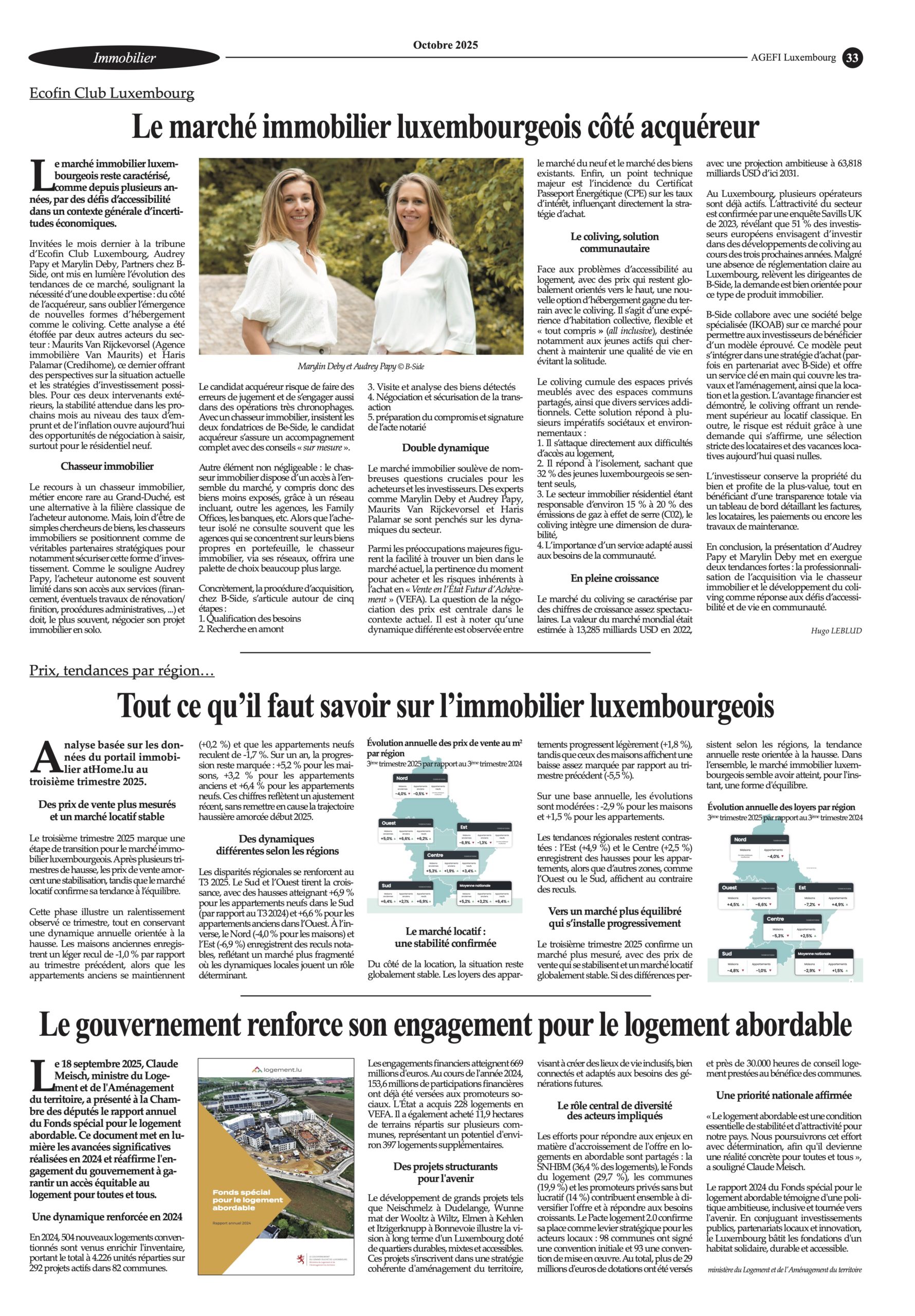 Dans l'édition de l'Agefi Luxembourg d'Octobre 2025, retrouvez page 33 un article concernant B-Side rédigé par Hugo Leblud: "Le marché immobilier luxembourgeois côté acquéreur".